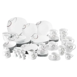 Kaffeeservice Palazzo 18tlg. – Weiß MitNachbildung-Kreisen In Grau Und Dunkelrot – Für 6 Personen