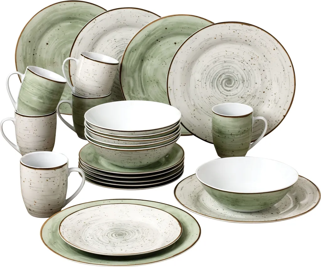 24tlg. Kombiservice Pur 6Pers Kaffeebecher Müslischale Kuchenteller + Speiseteller Flach Porzellan