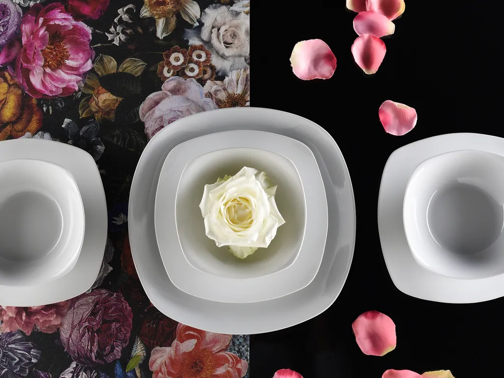 CreaTable 13915 Kombiservice Square Für 4 Personen, Porzellan, Weiß (1 Set, 16-teilig)