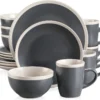 CreaTable 22699 Kombiservice Industrial Gold BLACK Für 4 Personen, Steinzeug, Schwarz (1 Set, 16-teilig)