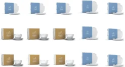 | Zusätzliche Varianten | FIFTYEIGHT Kombi-Service 30-tlg. – Tassen + Teller (mit Biss) + hochwertige Tischsets, FIFTYEIGHT Teller-Set 4-tlg. – Speiseteller + Suppenteller (mit Biss) + hochwertige Tischsets, FIFTYEIGHT Teller-Set 18-tlg. – Speiseteller + Suppenteller – Kuchenteller (mit Biss) + hochwertige Tischsets |