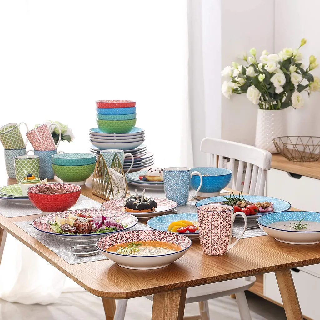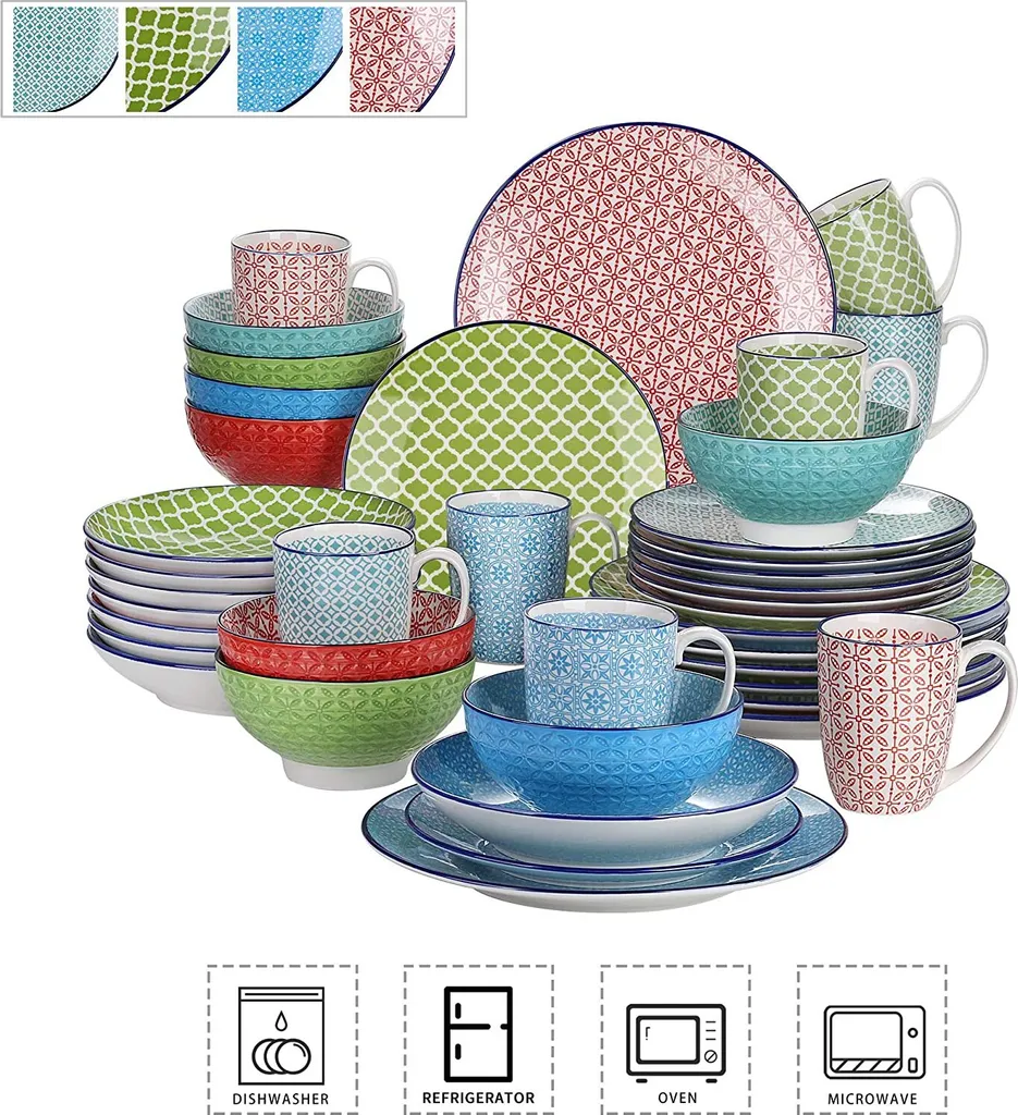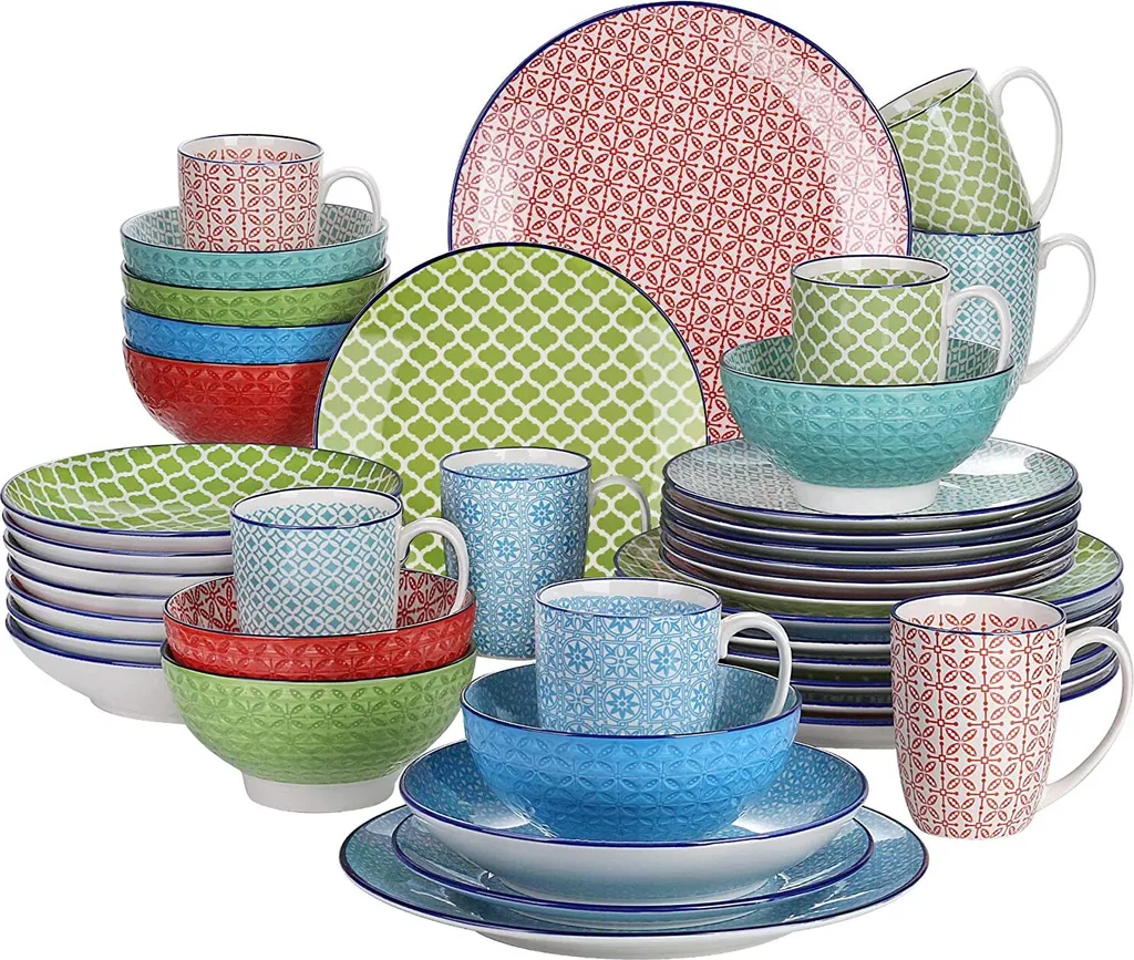 Kombiservice Porzellan, Vancasso Tafelservice Bunt, MACARON 40 Teilig Geschirrset, Mit Je 8 Speiseteller, Dessertteller, Müslischalen, Suppenteller Und Kaffeebecher Für 8 Personen