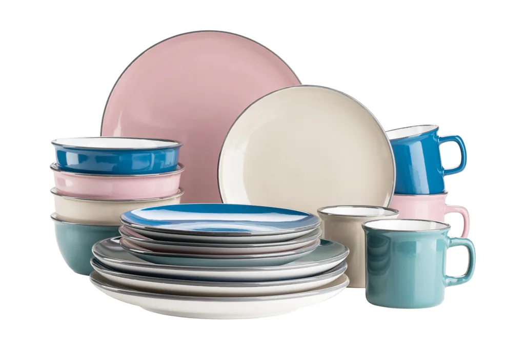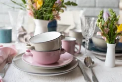 Mäser 931914 Kombiservice Pastell Selection Für 4 Personen, Steinzeug, Grau (1 Set, 16-teilig)