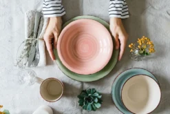Mäser 931492 Lumaca Frühstück-Service Für 6 Personen Im Vintage Look, Handbemalte Keramik, Steingut, Rauchblau, 18-teilig (1 Set)