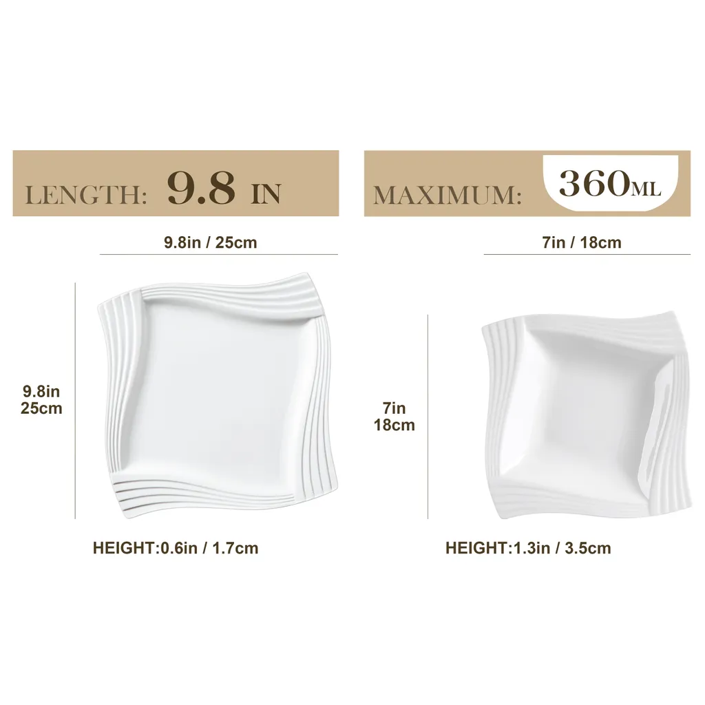 MALACASA, Serie Amparo, Cremeweiß Porzellan Tafelservice 12 Tlg. Set Speiseteller Und Suppenteller Geschirrset Für 6 Personen