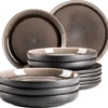 MALACASA, Serie Flora, Marmor Porzellan Tafelservice 12 Teiligen Set Kombiservice Geschirrset Mit Je 6 Speiseteller Und 6 Suppenteller Für 6 Personen