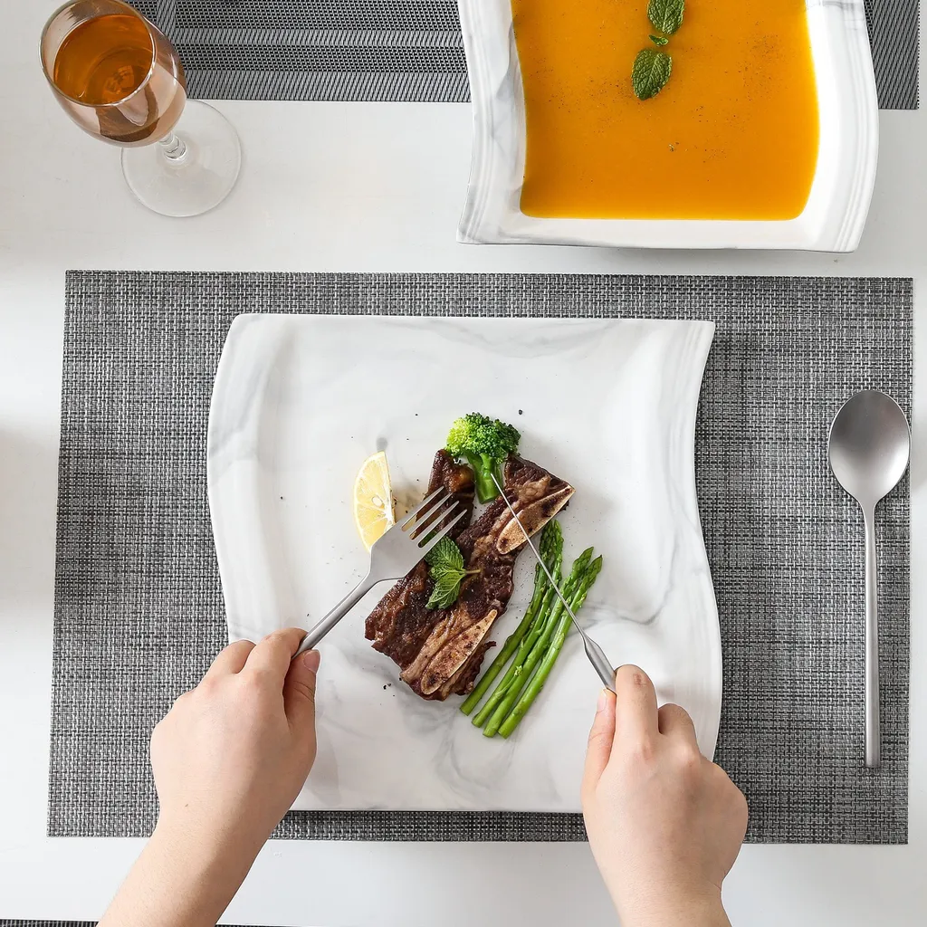 MALACASA, Serie Flora, Marmor Porzellan Tafelservice 24 Teiligen Set Kombiservice Geschirrset Mit 12 Speiseteller Und 12 Suppenteller Für 12 Personen