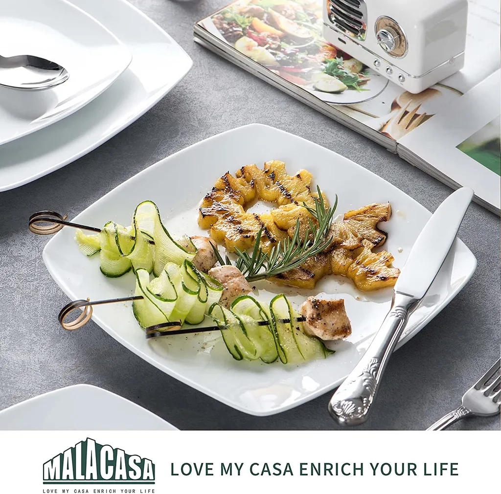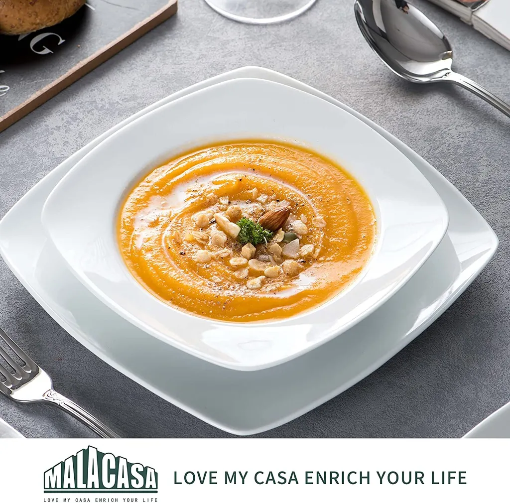 MALACASA, Serie Julia, 36 Tlg. Set Porzellan Geschirrset Tafelservice Mit Kuchenteller, Flachteller Und Suppenteller Für 12 Personen