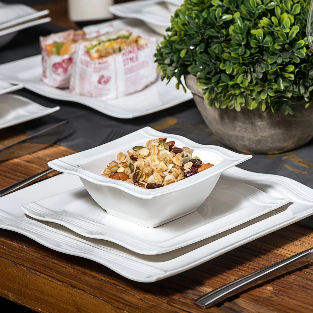 MALACASA, Serie Mario, 28-teilig Kombiservice Aus Porzellan Geschirrset Mit Je 6 Schalen, 6 Dessertteller, 6 Suppenteller, 6 Speiseteller, 2 Rechteckige Platten Und 2 Salz- Und Pfefferdosen