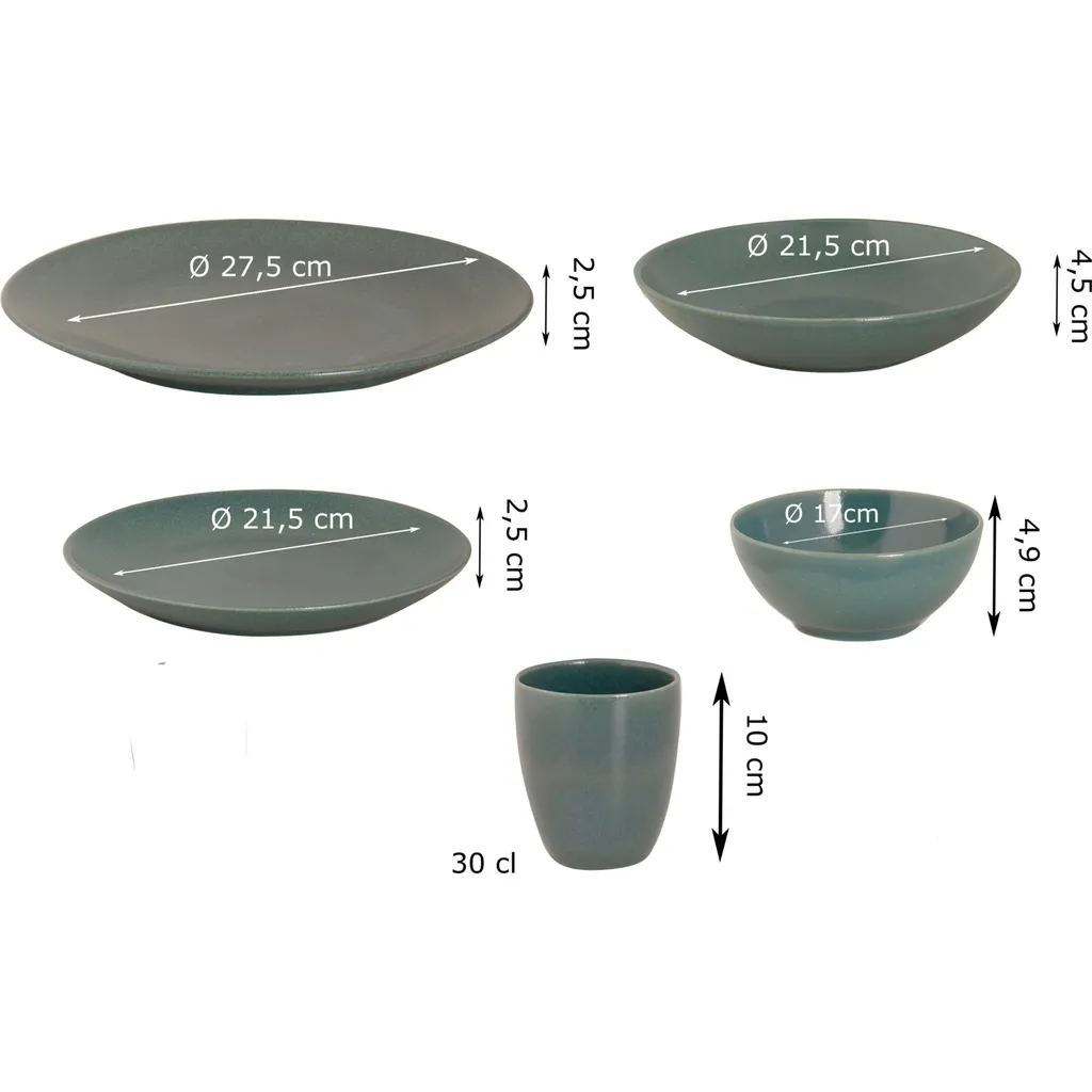 Mammoet Spirit Geschirrset 6 Personen, Steingut, Bestehend Aus Tiefen Und Flachen Tellern, Schalen Sowie Bechern– Je 6 Stück, Meer Grün, Seidenglanz, Handwerkliche Optik, Spülmaschinenfest