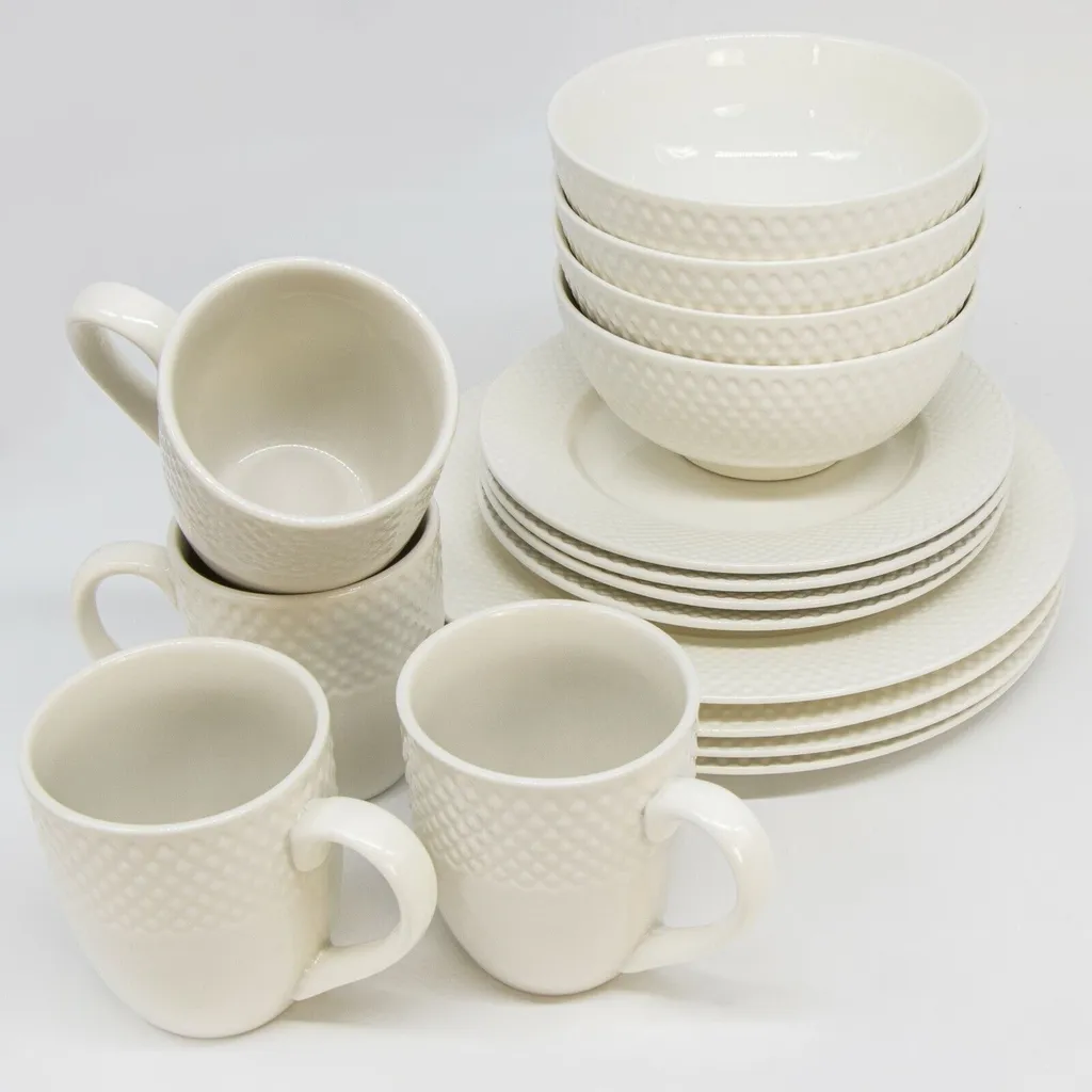 Porzellan Geschirr Set Weiß Für 4 Personen 16-teiliges Tafelservice Kombiservice