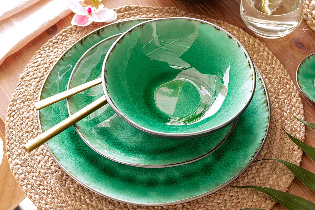 Sänger SÄNGER Steingut Geschirrset Palm Beach, Tafelservice & Servierplatten Set 23 Teilig Für 4 Personen