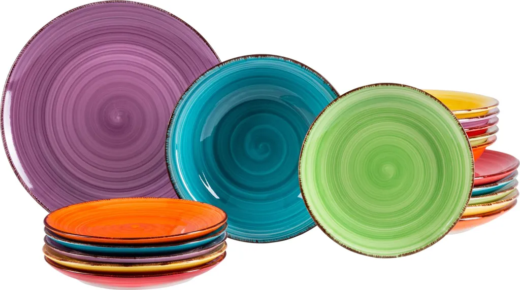 Tellerset Rainbow 18-tlg. 6 Personen Steingut Tafelservice Dessertteller Speiseteller Suppenteller