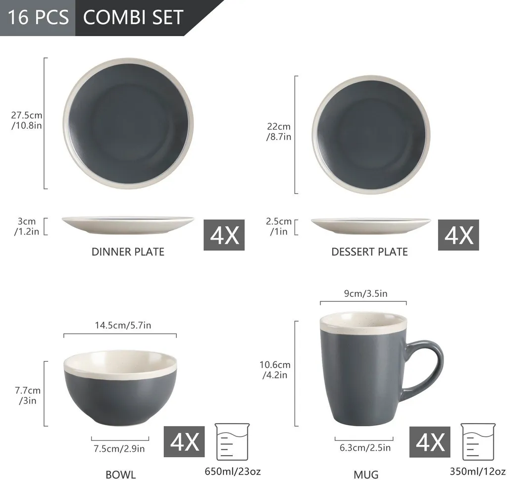 Tafelservice, Vancasso SEESAMI 16-teiliges Kombiservice Aus Steinzeug, Geschirrset Im Modernen Aussehen Für 4 Personen