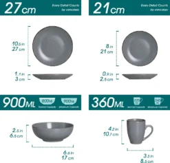 Mäser 931730 Kombiservice Glendale Für 4 Personen, Steinzeug, Schwarz (1 Set, 16-teilig)