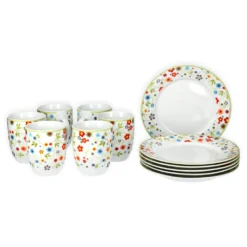 Van Well Frühstücksset 12-tlg. Für 6 Personen Serie Vario Porzellan – Farbe Wählbar, Farbe:flowers