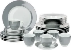 Van Well Kombiservice 30-tlg. Für 6 Personen Serie Vario Porzellan – Farbe Wählbar, Farbe:grau