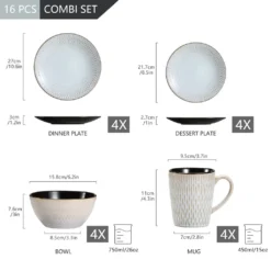 Vancasso Serie Navia Oceano, 16 Teilig Essservice Set Aus Steingut, Tafeiservice Für 4 Personen, Wasserblau, Vintage Aussehen, Natur Design