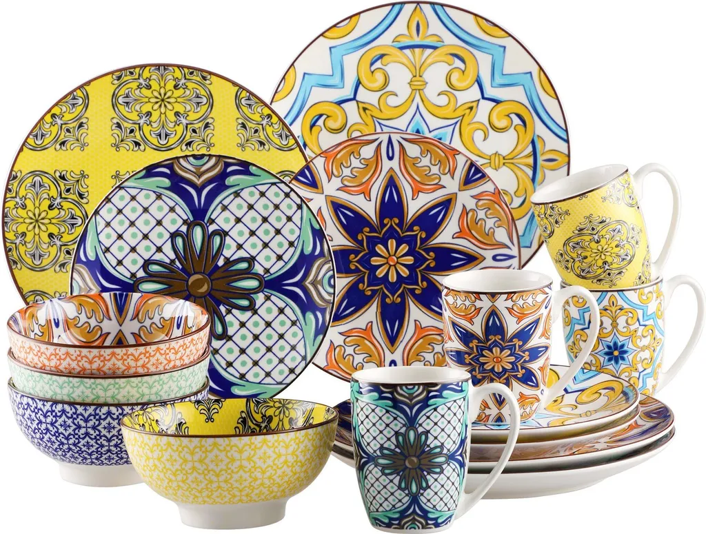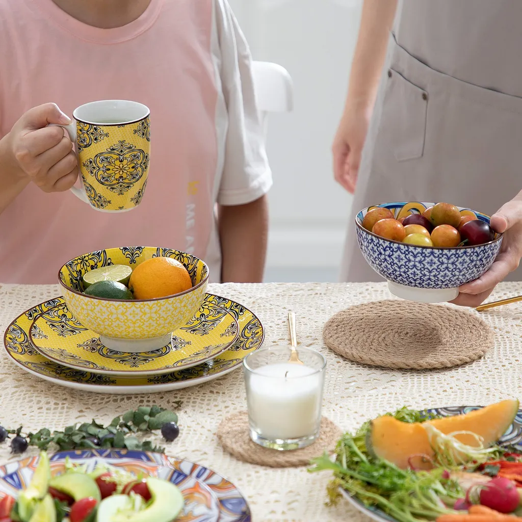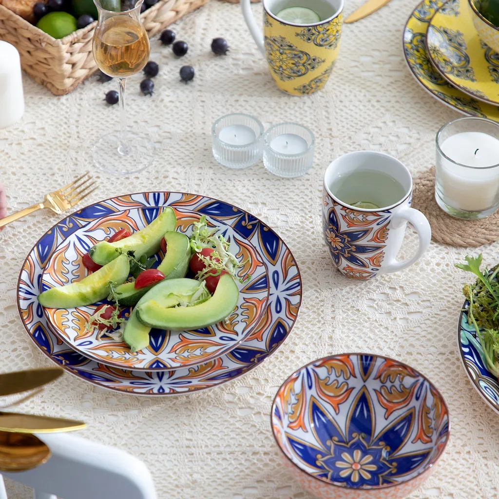 Vancasso Tafelservice Porzellan, JASMIN 16 Teiliges Essgeschirr Kombiservice, Handbemaltes Geschirrset Für 4 Personen, Böhmischer Stil