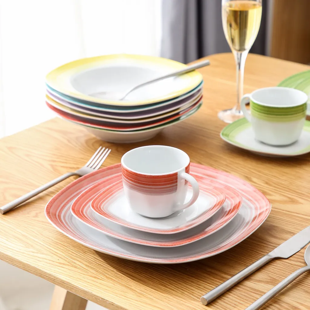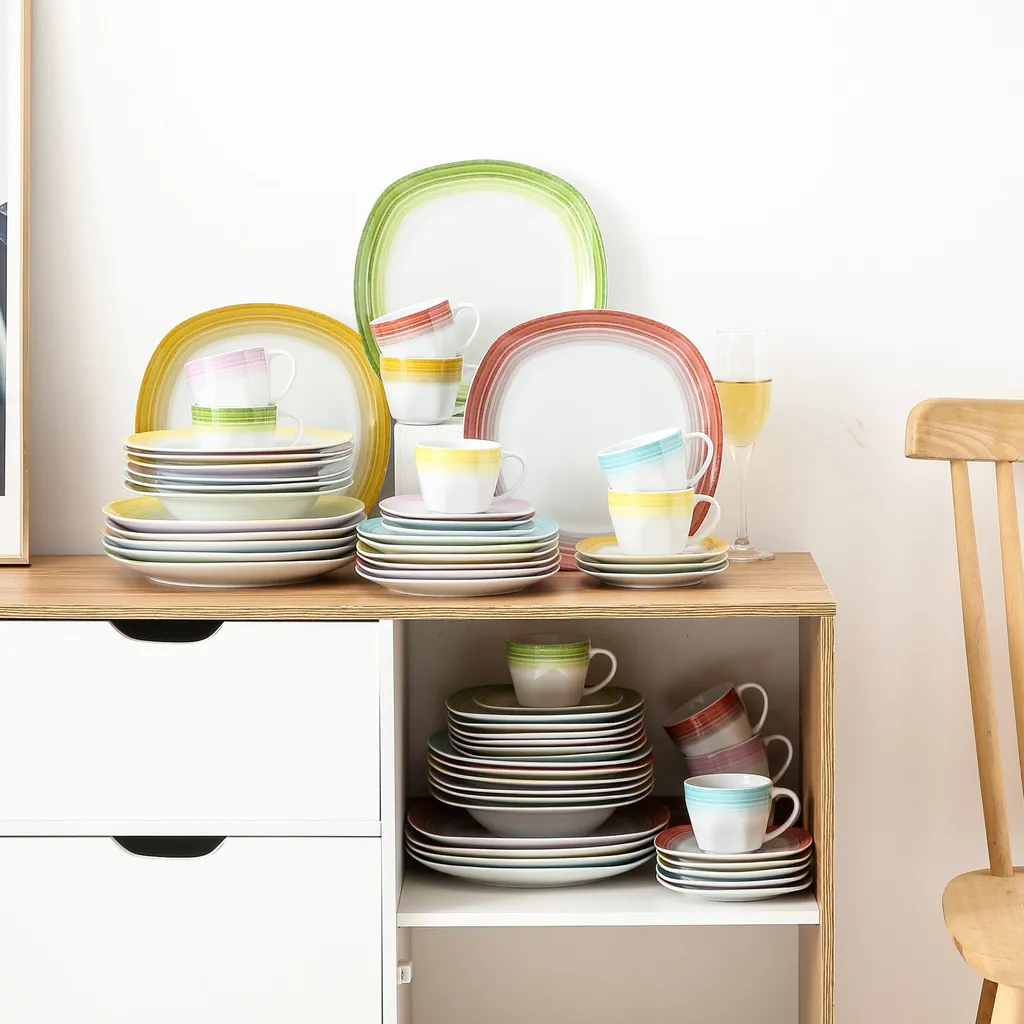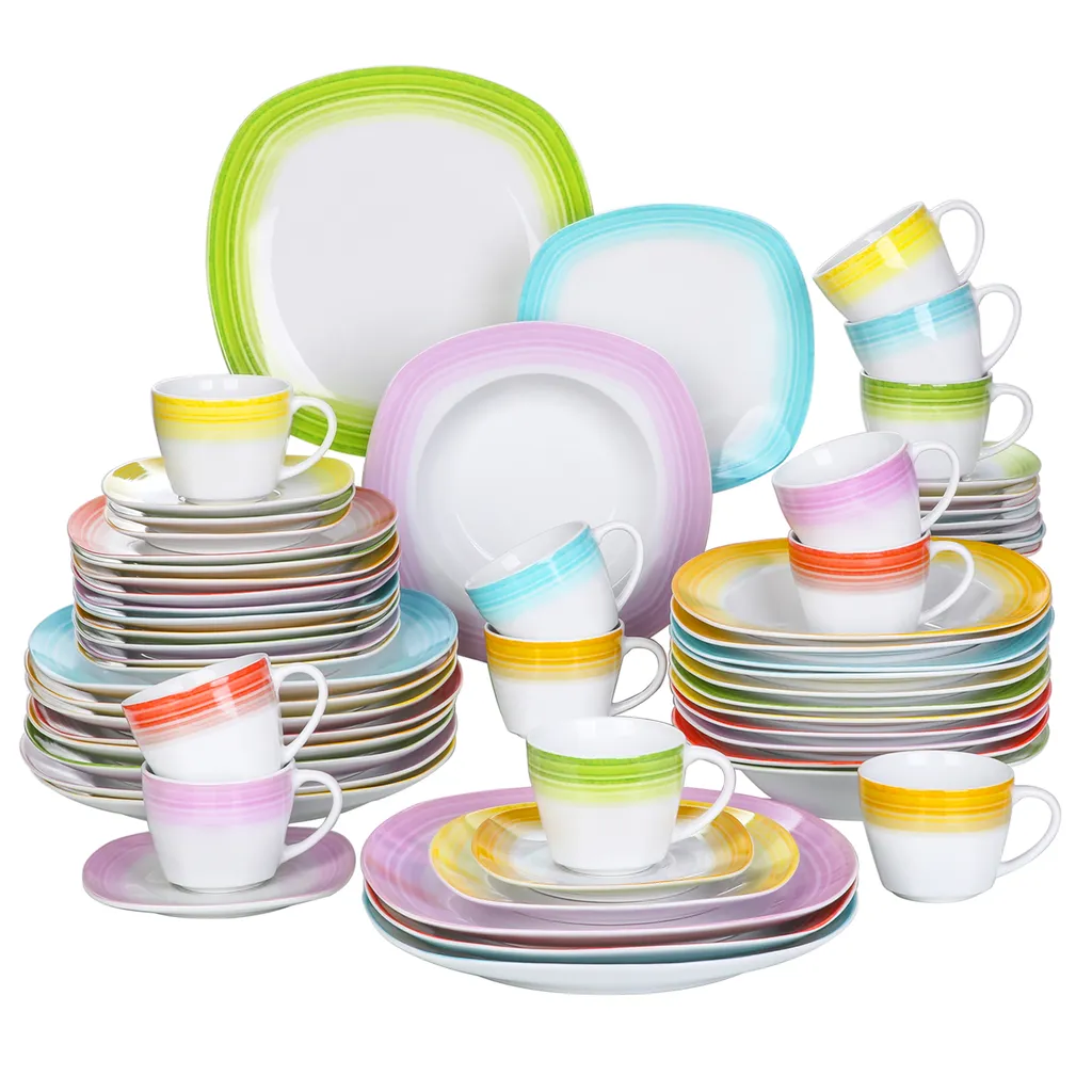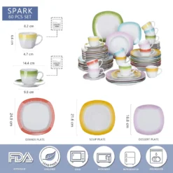 VEWEET Tafelservice ‚SPARK‘ Aus Porzellan, 60-tlg Kombiservice, Kaffeetassen, Untertasse, Dessertteller, Speiseteller Und Suppenteller, Komplettservice Für 12 Personen